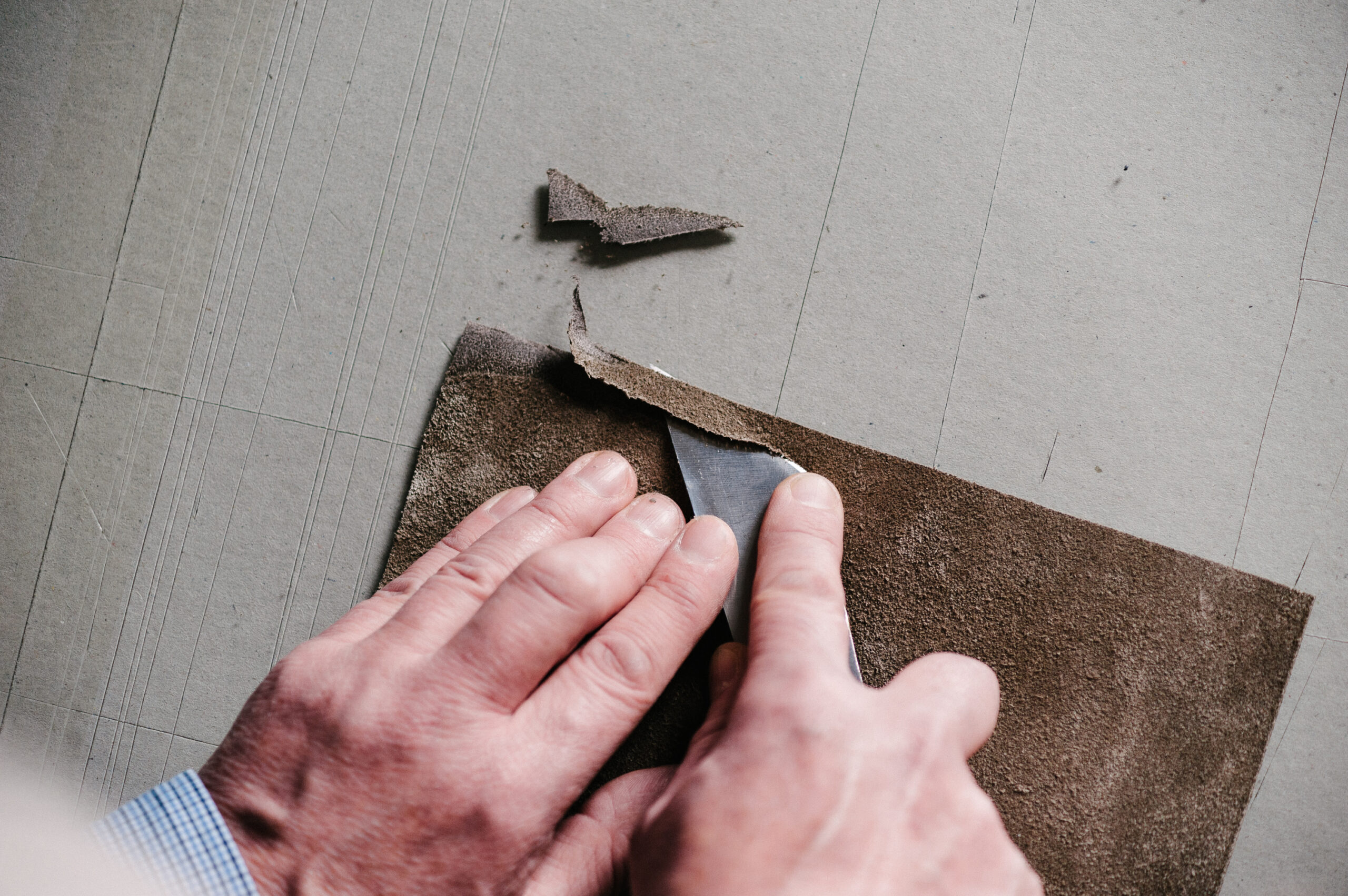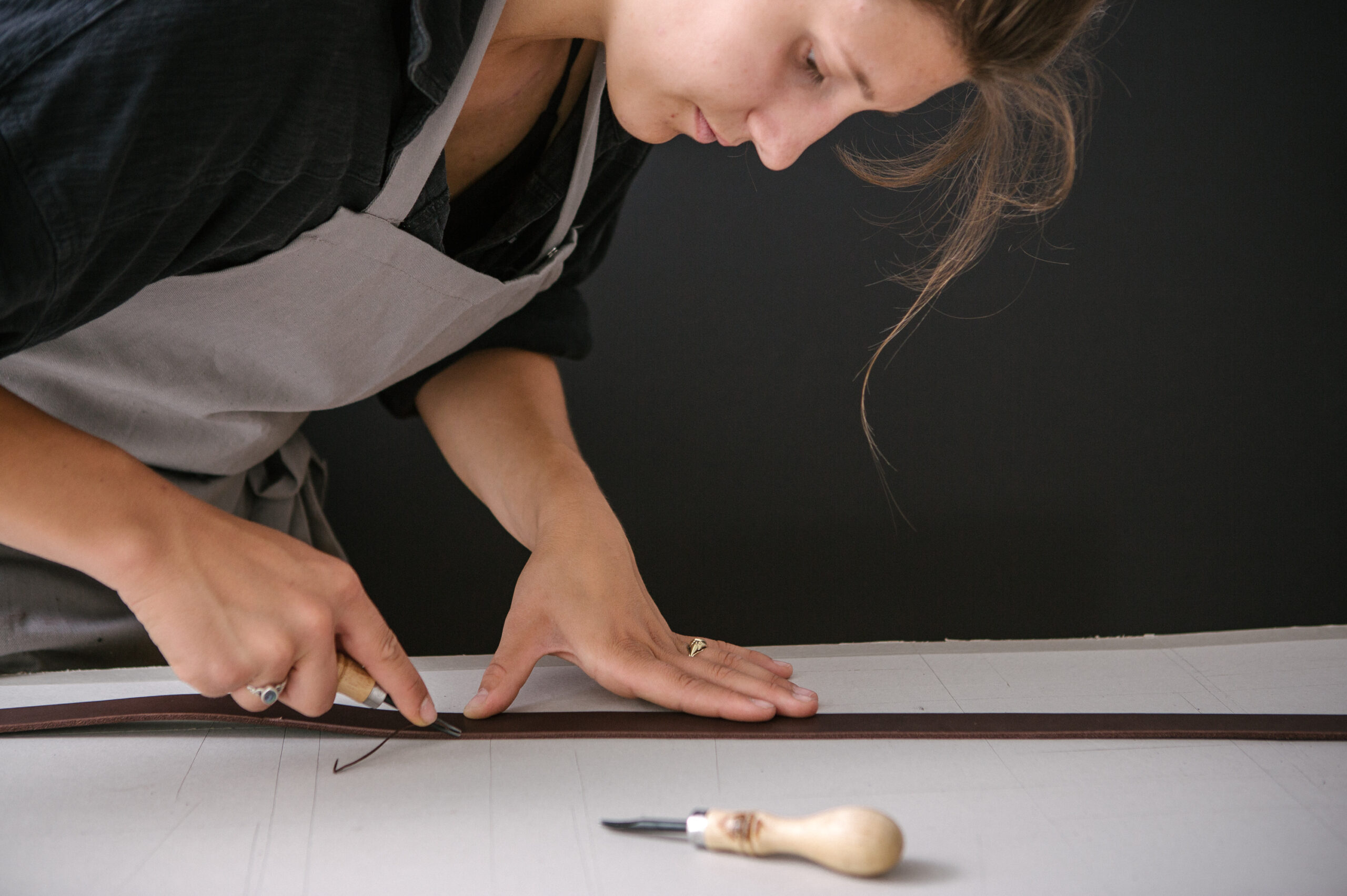 ständig bereit sein dazu zu lernen. So erfordert es beispielsweise eine ruhige Hand und ein feines Gespühr für das Material, um die Einschläge an den Kanten von dem ca. 1,2 mm dicken Leder auf ca. 0,2 mm zu verdünnen. Im Laufe der Zeit findet man dazu eine eigene individuelle Messerform, die genau auf die individuelle Handhabung angepasste ist.